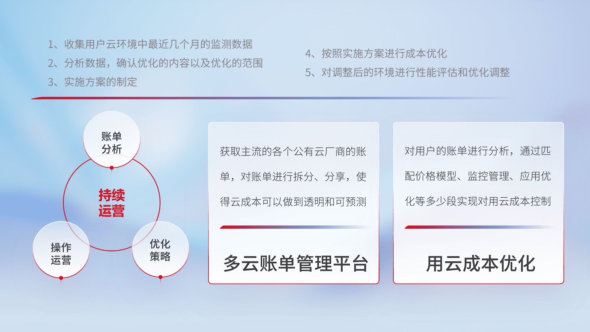 监控业务系统资源开销,,对资源的消耗精确计量,,,,实现费用的透明化管理,,不断提升资源使用率,,,,调整资源购买方式,,,降低资源费用成本,,,,用云成本可预测、、用云费用可优化,,,,云资源配额有据可依。。。。
